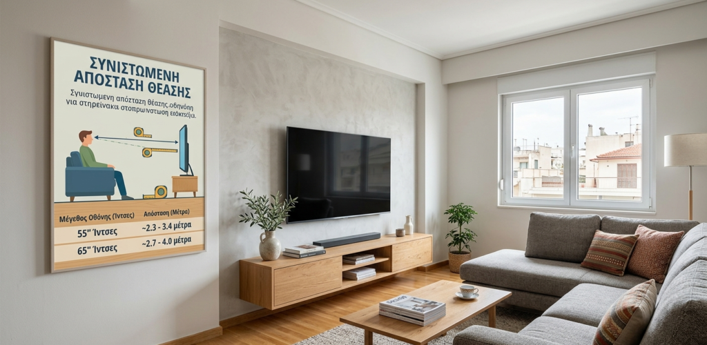 - Παράδειγμα: Αν κάθεσαι στα 2 μέτρα, μια τηλεόραση 55-65 ιντσών είναι ιδανική.